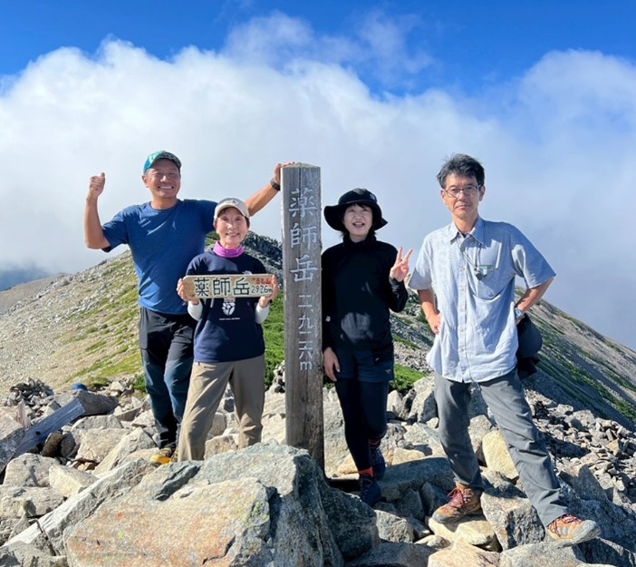翌朝は暗いうちに出発。ヘッドランプの灯りの中、黙々と登る稜線。そして、山頂。薬師岳の広々とした山頂に立ったとき、言葉にならない景色に、誰からともなく「来てよかったな」と小さな声が漏れる。あの瞬間、4人が感じたものは、きっと言葉を超えた「共有」だったと思う。